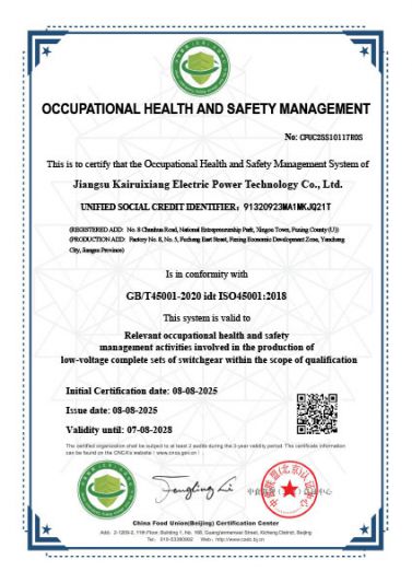 職業(yè)健康安全管理體系證書